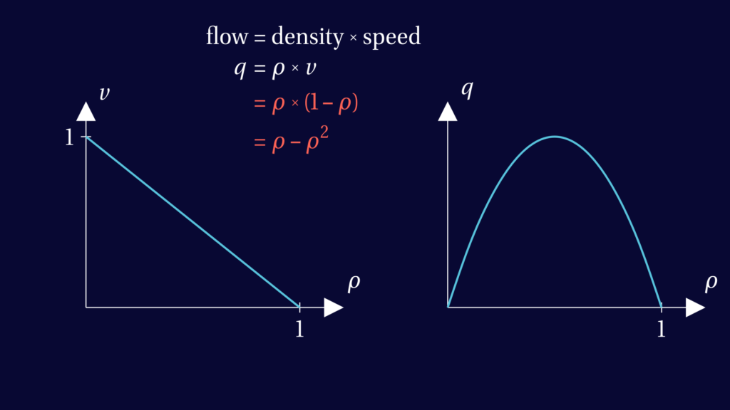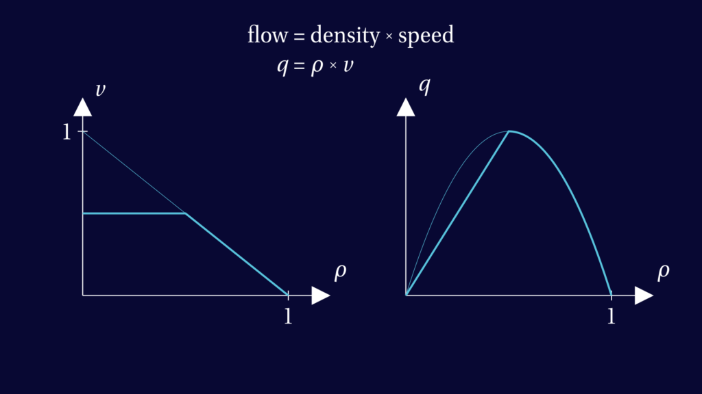 Let’s normalise density and speed. This means we choose use units of density and speed such that the maximum density and speed are both equal to one. This will simplify the formulas a little.